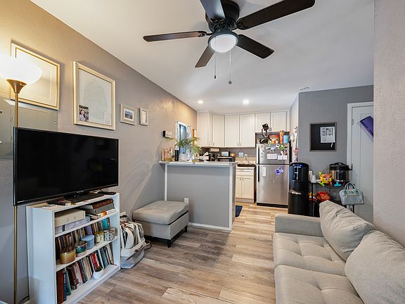 Clean bright and turnkeyModern finishesNeutral paintPrivate converted garage unitWhite cabinetryLaminate gray flooringQuartz countertops