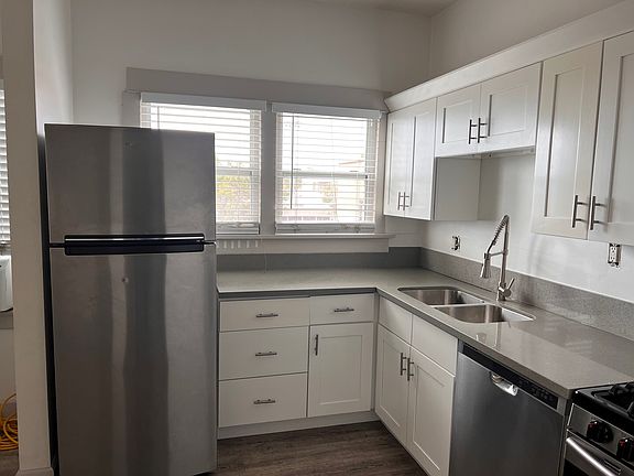 Wonderful 1920's architectural gem with with loads of curb appeal and character on quiet street west of Gaffey in San Pedro. Recently remodeled unit in a center hallway building with exterior and common areas, vintage lighting fixtures, crown moulding. The unit that is available is a 1 bedroom 1 bath apartment on the 2nd floor that has been remodeled with new wood flooring, paint, new kitchen and bathroom cabinets and quartz stone counter tops. Ready to move in, featuring stainless steel appliances (Samsung gas stove, refrigerator, dishwasher). $1,795 per month rent. Nice size living room with AC that features lots of natural light. There is a large private balcony off of the living room that has views of the city lights at night. Located across from Daniels Field and tennis courts. Walking distance to Starbucks, Vons Grocery store, laundromat, elementary school, Dana middle school, Mary Star School, and several places of worship. Available August 1st week of August!