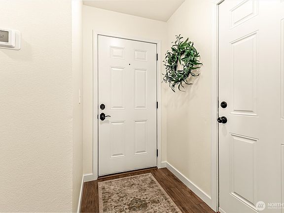 Experience refined living in this beautifully updated, move in ready, freshly painted 3BR townhome in desirable Kassie's Way. Gorgeous laminate flooring enhances the open-concept main level with spacious living, dining, and a modern kitchen ideal for entertaining. Upstairs, plush carpet leads to three large bedrooms, including a luxurious primary suite with a vaulted ceiling, two expansive closets and updated modern en-suite with walk-in shower. Enjoy central A/C (2022) and a private fully-fenced backyard with gate to common lawn and easy access to community sports court, playground and picnic area. Oversized 2 car garage w/storage plus two more parking spots in driveway. Prime location near schools, Boeing, SR-99, and I-5.