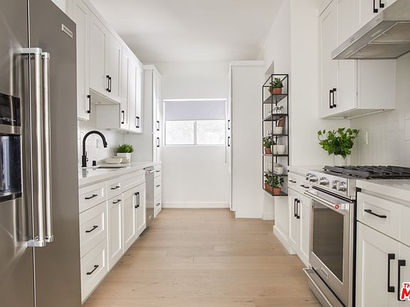 Designer renovated townhome 12 blocks from the beach in desirable North of Wilshire location. This fully renovated 2 bedroom 2.5 bathroom townhome has been beautifully updated with white oak engineered wood floors, CaesarStone countertops, stainless steel Kitchen Aid appliances, Meile W/D, Toto toilets and high end fixtures throughout. Large rooms, high ceilings and crisp white walls make this home feel open and bright. Living room and dining room open to a generously sized balcony. Large cooks kitchen is equipped with gas range and ample storage space that include two pantry cabinets. Upstairs the generous main bedroom features an en-suite bathroom with double vanity, a luxury shower and a large walk-in closet. Second bedroom has large walk-in closet with a full bathroom with tub off the hall. Enjoy easy access to Montana Ave, 3rd St Promenade and the beach. Small building with only 9 units that includes an underground garage with two car tandem parking spaces.