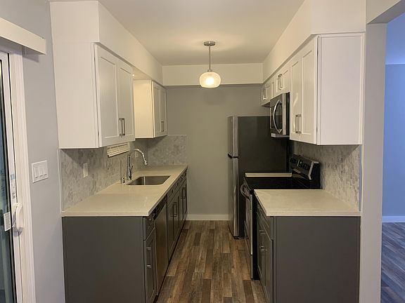 Full kitchenGenerous closet spaceStainless steel appliancesLots of lightNew laminate floorsWalk-in closetsDouble pane sliding door