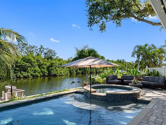 Discover the perfect blend of privacy, luxury, and durability in this stunning waterfront home—designed for effortless living and has NEVER FLOODED. Nestled on a quiet canal with direct access to Tampa Bay, this rare jewel offers an undisturbed view of a protected preservation area, ensuring your backyard remains a sanctuary of natural beauty and PRIVACY. From your dock or living room window, enjoy daily encounters with manatees, dolphins, and a vibrant array of coastal birds—your own private connection to Florida’s wildlife. The pool and spa (2014) create a resort-style oasis, complemented by a natural gas outdoor kitchen (2020)—ideal for entertaining year-round. Recent upgrades include new raised sea wall (2020) and a gas Hayward spa/pool heater. Inside, the home shines with a fully renovated kitchen (2019) featuring modern cabinetry and countertops, paired with high-end appliances including a French door LG refrigerator (2021), GE Profile gas stove, and new GE dishwasher (2025). Natural light floods the living space through newly replaced windows (2021), including a dramatic picture window in the living room. Additional features include: New shingle roof (2019) and flat roof (2025), Gas tankless water heater (2021), Lennox A/C with gas furnace (2023), Updated ductwork and insulation (2019), 8x10 Tuff Shed and boat trailer pad (2021), and Security system. Enjoy direct water access from your private dock, featuring composite decking, a fish cleaning station, and a Hi-Tide 9,000 lb aluminum gear drive boat lift with remote control (2013). Whether you’re boating, fishing, entertaining, or simply relaxing as dolphins glide by the dock, this home offers a seamless blend of natural beauty, privacy, modern luxury and peace of mind.