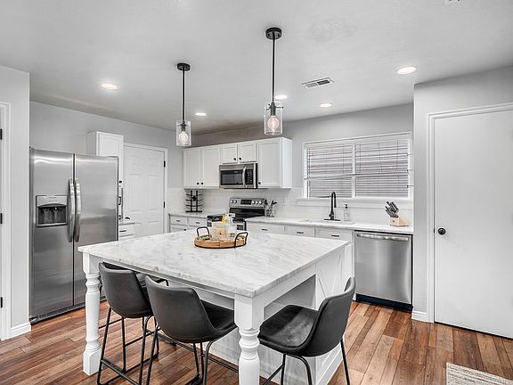 Fenced yardTwo-car garageMountain backdropLvp flooringNew roofInviting two-story homeRecently installed ac unit