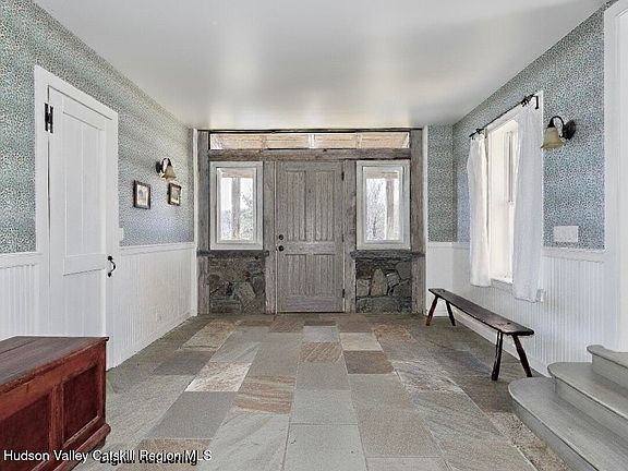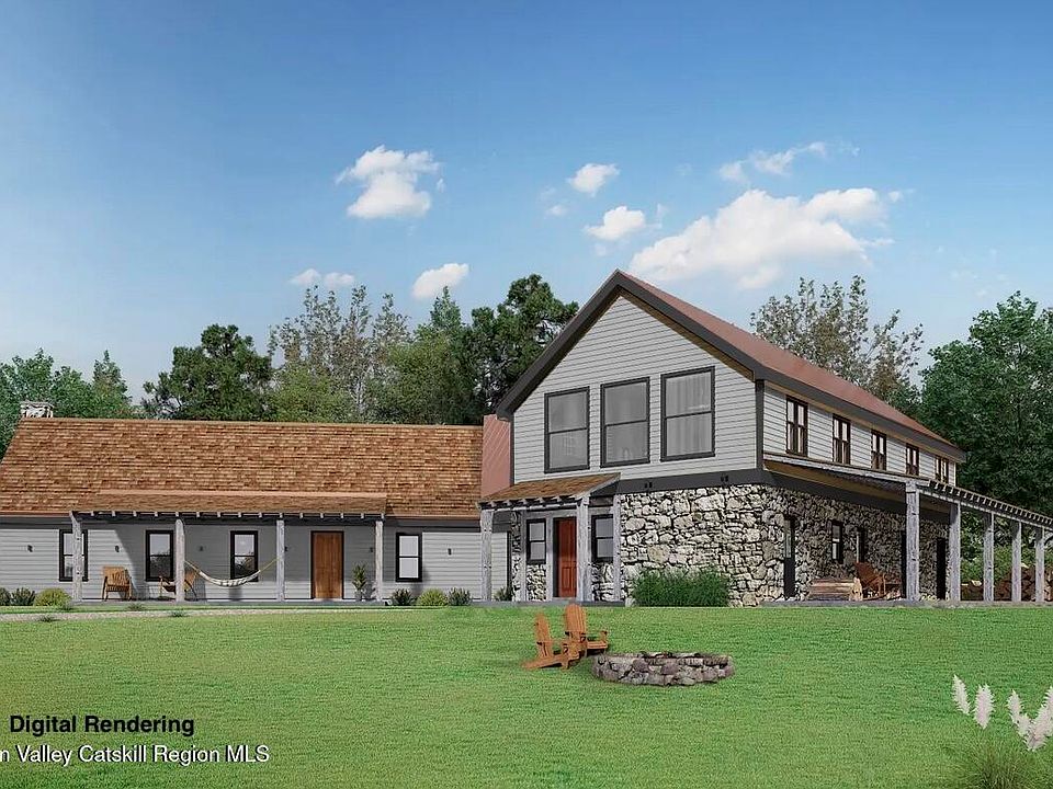 Perched atop a secluded hill in the bucolic town of Ancram, this European-inspired farmhouse is currently under construction and set for completion later this year. Blending timeless charm with modern luxury, the home promises sweeping panoramic views of the contiguous 160 acre working farm, rolling fields and distant mountain ranges. The house is framed, nearly completed on the outside, and ready for a buyer to customize the finishing touches inside. Accessed by a long, winding private drive through open meadows and agricultural fields, the property spans 16 private acres—a rare offering of natural beauty, tranquility, and understated elegance. Thoughtfully designed to reflect the warmth and character of Old World craftsmanship, while providing modern amenities such as radiant heat floors, high-end appliances, Marvin windows, and metal and cedar shake roof. The floor plan features a dramatic 50' x 20' great room with soaring 18-foot ceilings and is anchored by a fireplace, four bedrooms, and three and one half baths. This expansive space flows seamlessly into covered porches and stone patios on both sides, ideal for entertaining or soaking in the surrounding serenity. Outdoors, the landscape invites both relaxation and recreation. A beautifully integrated heated, in-ground saline 70' x 17' pool will be the centerpiece of warm-weather enjoyment, complete with a stylish cabana featuring an outdoor shower—perfect for refreshing after a swim or hosting summer gatherings. Curated stone patios and rolling hills further enhance the experience, offering multiple vantage points to take in the breathtaking surroundings. Ideally located between Pine Plains, Millerton, Hudson, and Rhinebeck—and just two hours from NYC. This is a unique opportunity to shape your dream estate in the heart of the Hudson Valley.