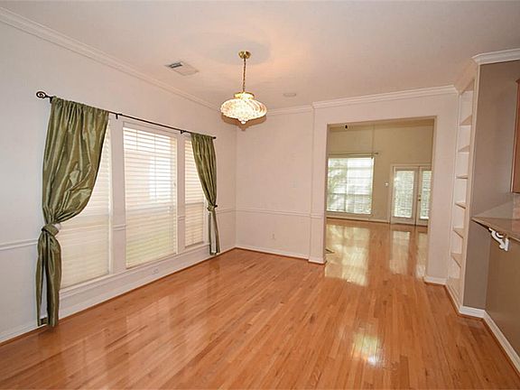 Spacious townhouse in small gated enclave w/nice rear patio backing to greenbelt. Master bdrm is on the first floor! Two large secondary bedrooms are located on the second level. Granite kitchen has GE stainless steel appliances & breakfast bar. Master bath has double vanities, jetted tub and separate shower. Living area has hardwood floors, gaslog fireplace & French doors. Huge upstairs game room/media room could be 4th bedroom/man cave. Zoned to Bush Elementary!