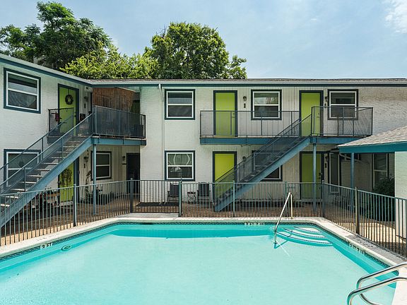 This quaint studio property is located just a short walk to Barton Springs Pool, Zilker Park, Hike and Bike Trails and more. With off-street parking, a pool, and on-site laundry, these 400 sqft studios are a great place to call home. Each unit has wood plank flooring, stainless appliances and a generous walk in closet. 2nd floor units have vaulted ceilings. Water, trash and drainage included in additional $50 monthly charge.