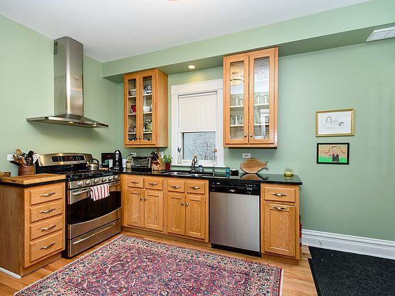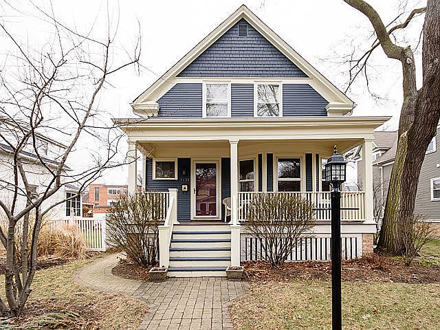 Sunny well cared for Farmhouse with charm and style. Located on pretty street . Hardwood floors throughout. Gracious Foyer, Living room, Dining Room with built-ins. Updated kitchen with granite counters and stainless steel appliances. 3 good sized bedrooms on second floor with large closets. Master bath/slate tile shower. Pretty hall bath with claw foot tub. Unfinished basement with laundry rm. Gorgeous back yard with stone patio is landscaped by a professional horticulturist. Custom two car garage with storage loft. Located blocks to Main St shops, Metra, EL and NU shuttle!