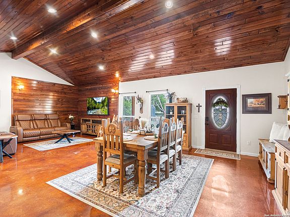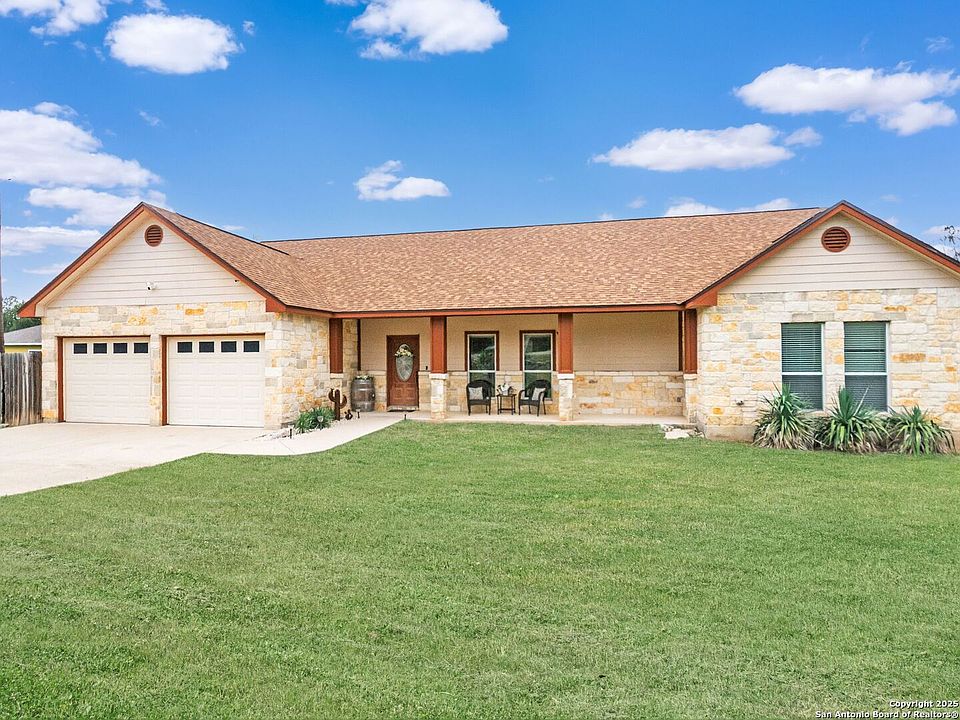 This home blends warmth, custom craftsmanship, and thoughtful design in an exceptional location! Nestled in the Rivermont neighborhood, residents enjoy exclusive access to a private park along the Guadalupe River, along with two neighborhood pools, a soccer field, pavilion, tennis courts, and basketball-creating a vibrant, outdoor-friendly community. Inside, the one-story layout is designed for both style and functionality, with no carpet, vaulted ceilings, stained wood doors, and rich wood accents throughout. Custom cabinetry enhances the character and quality of every space. The kitchen-anchored by a center island, built-in pantry, and granite countertops-is thoughtfully arranged for both everyday cooking and entertaining. The primary bath offers a luxurious retreat, featuring a separate jetted tub and shower, while the walk-in closet is completely custom, boasting a center island and built-in cabinetry for optimized clothing storage. Every detail speaks to craftsmanship and convenience. Stepping outside, the home continues to impress with a covered grilling area, a built-in outdoor fireplace, and a dedicated firepit space-ideal for year-round gatherings. A lofted storage shed provides extra utility, while an RV hookup and ample parking space accommodate adventure seekers who need room for boats or RVs. This home delivers both comfort and accessibility, seamlessly blending everyday practicality with elevated amenities.