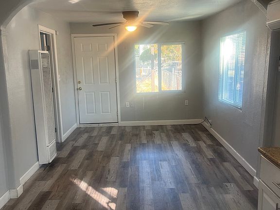Available now! Updated 1 bedroom, 1 bath home with large front yard/parking space and additional backyard and storage shed. Includes stove/oven, refrigerator and A/C system. Owner pays for garbage and recycling.
