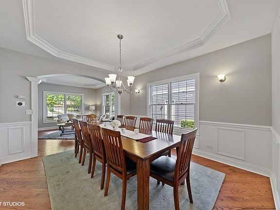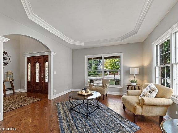 Highly sought after in town Arlington Heights location. Light and bright open floorplan. Prepare to be impressed. Sweeping foyer welcomes guests into the beautiful home. Luxury features such as tray ceilings, crown molding, arched entrances and windows galore, continue through the formal living room and dining room. Chef's kitchen overlooking backyard with exquisite features like, custom wood cabinetry, double oven, stainless steel appliances, 6 burner cooktop, granite countertops, large island, walk in pantry, can and pendent lighting. Breakfast area can accommodate large table and beautiful sliders to back patio. Family room has beautiful brick fireplace, large windows, hardwood flooring, crown molding and extra molding features. Rarely found first floor office with beautiful finishes, crown molding, tray ceilings, wainscoting. Large mud room/laundry off attached 2 car garage. First floor is complete with white shutters on windows and hardwood flooring throughout. 2nd floor has many extra features. 4 large bedrooms, one en-suite with full bath, walk-in closet and separate sitting room great for in-law and office. Additional bedrooms have walk-in closets that are complete with custom built-in's, window seats and shutters. Hall bathroom with double vanities, linen closet and glass door. Sizable Master Bedroom with tray ceiling, extra windows and shutters. Master bath has vaulted ceilings, double vanity, Walk in shower with rain shower head and 4 wall jets and oversize jacuzzi. Wood banister staircase continues into the basement, which is a full basement with large Rec Room, bar area, full bath, 2 additional bedrooms and lots of storage. The backyard is an entertainers dream with stamped concrete, large seating area, built in fire pit and professionally landscaped. Brick exterior, front porch for with seating area. Extremely well built, solid home. Award wining Olive Mary Stitt/Thomas Middle/Hersey HS. Walk to parks, pools, downtown, train. Will not disappoint.