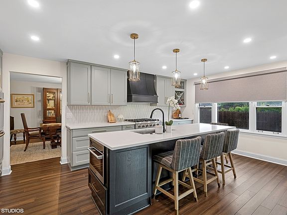 Many upgrades on this 4 bedroom, 2.1 bath house in Wilmette/Avoca School District! Gorgeous kitchen renovation, including removing a wall to open to family room. New cabinets, counters, appliances, lighting, backsplash and pantry. First floor has new wood floors through out. Powder room completely renovated. First floor laundry. Four bedrooms and two full bath upstairs. Updated finished basement. Two car attached garage and newly fenced in yard. House has solar panels. Walk to Loyola Academy and NT West, plus Forest Preserve bike and walking trails. Don't miss!