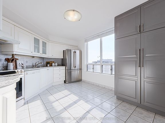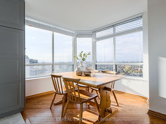 Welcome to your new home in the sky at the exceptional Primrose Condominiums! This bright and spacious 2 bedroom, 2 full bathroom suite offers panoramic 180 views that capture both sunrise and sunset along with the stunning northern skyline. Expansive windows fill the space with natural light, creating an uplifting, airy atmosphere and breathtaking views from every room. Refined details like gleaming hardwood floors, crown moulding, smooth ceilings, and elegant wall sconces bring warmth and character. The updated kitchen is large and inviting, featuring space for a full eat-in table plus a separate dining area - a rare luxury in condo living. The layout is well-appointed with 1432 square feet plus a private balcony, making the suite a truly livable space. Both bedrooms are generously sized with ample closet space. All utilities are included (even cable TV), meaning no separate hydro, water, or gas bills - just effortless, worry-free living. A tandem parking spot fits 2 cars for added convenience. Primrose Condominiums reflects genuine pride of ownership, with tastefully renovated hallways, elevators, and an elegant lobby. Resort-style amenities include an outdoor pool, tennis court, sauna, gym, and gated security entrance - offering comfort, safety, and a truly elevated lifestyle. Located steps from public transit (TTC and YRT), diverse food options, schools (Rockford PS and Fisherville Sr PS), shopping, parks, green space and everyday conveniences, this location can't be beat. Whether you are a downsizer or growing family, this suite combines space, light and comfort. Make #1511 your home, sweet home!