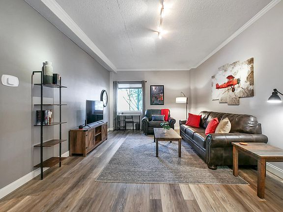 This price is unfurnished only. Does include all amenities. Spectacular downtown views. 1 bedroom, condo, all utilities including all amenities available at the Pinnacle. Laundry in building, large tv's, free parking and building security! Enjoy the salt water pool while grilling and lounging on the deck with a wonderful view of North Chattanooga/Lookout Mountain. The common area has a club room with a full kitchen. Fully equipped gym and theater. This one bedroom condo is easily accessible on the 1st floor of the building. nice sized living room that attaches to the kitchen and breakfast area. Stainless steal appliances and new counter tops in the kitchen. 1 private bedroom with black out curtains. Updated bathroom with tiled floors and a tub/shower. New generator to keep the building power always on, new roof, new HVAC unit. Laundry available in building!