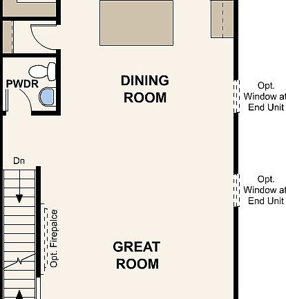 Walk-in pantryDining areaPowder bathFlex roomOpen great roomPrimary suiteAdditional bedrooms