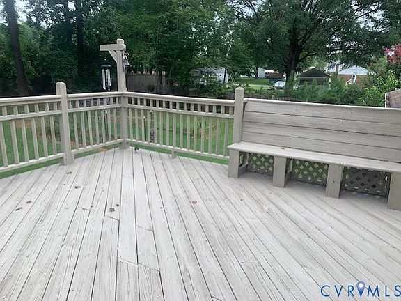 "It's like living in the country, without being too far from the city!" -- You'll love Physic Hill, tucked away off of Hull Street... just minutes to 288, but it feels much farther away. Quiet cul de sac location, 1/2-acre flat lot, oversized rear-entry garage (22.5 x 28) with ample room for a workshop, too. Extra-wide driveway for plenty of parking. Updated kitchen with beautiful cabinets -- lots of storage space, and good counter space, too! Hardwood and tile floors throughout. Large primary bedroom with access to deck, and updated primary bath. Deck recently refreshed: powerwashed, painted, new drink rail installed. New Navien tankless hot water heater. Roof 2014. Heat pump 2014. Stainless steel chimney liner 2014. Dryer hookup for gas or electric. Deck has gas hook-up for firepit or gas grill. Garage refrigerator conveys.