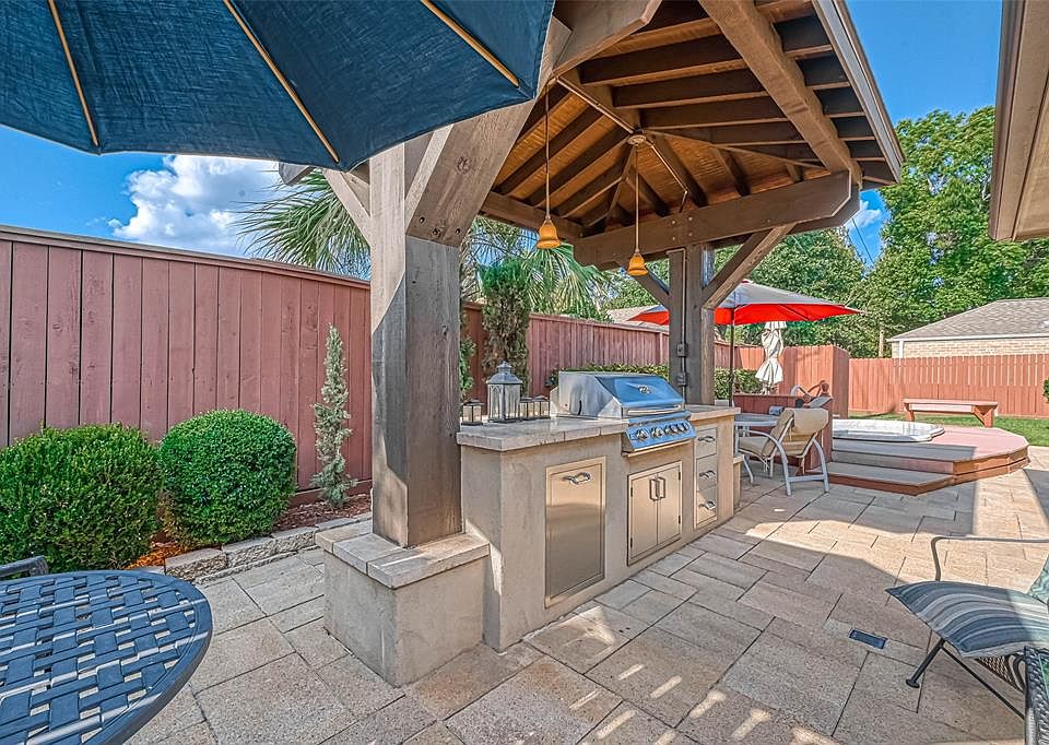 Welcome Home to 11310 Ella Lee situated on a lovely cul-de-sac street near employers in the Energy Corridor and the entertainment/shopping district of City Center! Meticulously maintained, this property features a backyard oasis including a bubbling spa w/ decking surround ,a luxurious outdoor kitchen! Inside you will find a cook\'s delight of a kitchen with a massive island, double ovens, warming drawer, microwave drawer, trash compactor , under cabinet lighting, travertine backsplash and more.A generous master suite features a walk in closet, a recently renovated bath with custom shower, cabinets with custom pull outs with soft close feature, quartz counters, designer tile flooring and more. The family room features high ceilings, built ins, fireplace all . with a view of the atrium located off the entry .Other features include roof replacement 2021, lush landscaping, utility room with additional storage closet & folding table.Entire Home Re-piped w/ Pex 2018, and Leaf Guard Gutters