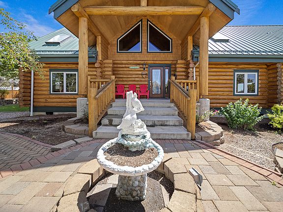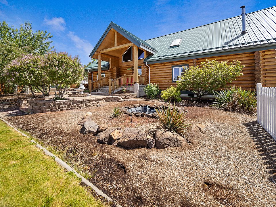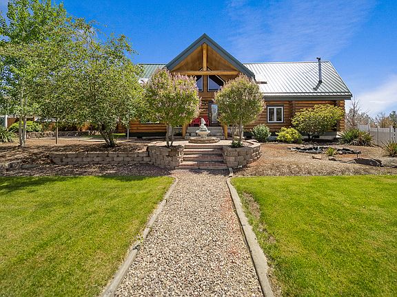 Beautiful custom log home on 10 acres at the end of a private road with Cascade Mountain View. Open great room with floor to ceiling windows to take in the views, large kitchen with island and prep sink and built in flour and sugar bins and desk area, huge laundry room with utility sink, pantry floor to ceiling windows, pull out drawers, laundry chute, and build in ironing board. Two bedrooms and one bathroom on main level, vaulted office/craft room upstairs has a closet and could easily be a fourth bedroom, primary suite is a loft with amazing views of the Cascades, walk in closet and sky light, large bathroom with jetted tub, double vanity, glass block walk in shower & walk through closet. Outside you will find a 1648 sq ft wood shop, fully insulated with bathroom and dust system and an overhang in back for trailer storage, a 36x48 shop with one RV door, a detached double car garage with storage room for gardening supplies and mowers, and a greenhouse. Property is beautifully lands