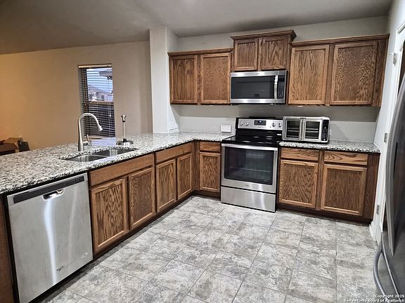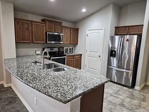 Welcome to this inviting single-story home that perfectly blends comfort, style, and functionality. Featuring 3 spacious bedrooms and 2 full bathrooms, the thoughtfully designed layout offers plenty of room for both relaxation and entertaining. Enjoy the versatility of an open floor plan, along with an office in the front of the house for quiet and accessibility from the entrance. cozy dining/living combined with kitchen that's ideal for cooking for your family. Outside, your private retreat awaits: a beautifully fenced backyard showcasing a landscaped yard, and an enclosed patio for relaxation for the morning coffee, great for weekend get-togethers, or simply unwinding after a long day. All this, and a prime location offering quick access to major highways, Lackland AFB, Home Depot, and a new Target are minutes away. This home truly has it all-comfort, convenience, and a backyard oasis you'll love coming home to.