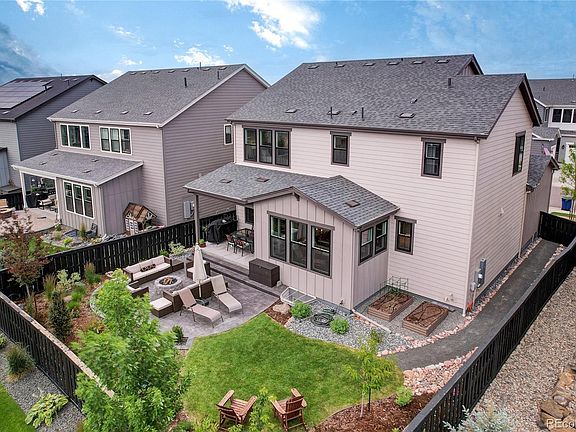 Motivated Seller wants to be under contract by the end of the year and will consider all reasonable offers!  Seller is also offering a 2% buy-down of the interest rate. This is an impeccable, move-in ready home - no more investment needed and nothing left to do but enjoy!  Everything completed including blinds, fencing and upgrades.  The backyard is exquisitely completed w/ professional landscaping, raised garden area, drip lines, & lovely patio w/ built-in gas fire pit. From the extra large front porch you will step inside to a light & serene space w/ thoughtful architectural style and flow. The kitchen is a dream with a large island and ample seating. Plentiful quartz counters, upgraded soft-close cabinetry, walk-in pantry, coffee counter, under cab lighting, high-end appliances, and thoughtful additional touches recently added such as special drawer organizers for pots, dishes & spices. Overhead enjoy the gorgeous alabaster lighting. All of this open to generous great room & dining area.  A spacious office & powder room complete the main floor. Upstairs find a sumptuous primary suite, large walk in shower, double vanity, 2 linen closets & big walk-in closet.  Also find 2 spacious bedrooms w/ access to a full bathroom. And you have an extra bonus room for workout, extra office, or theater room!  Blinds are installed throughout. Downstairs is a huge unfinished basement (plumbed) to utilize as you desire.  Storage abounds and you have a spacious 3 car tandem garage. Extras include 2 furnaces/2 AC units for comfort upstairs and down. All of this located in the award winning Solstice neighborhood with a resort-style pool, clubhouse, and weekly events and activities. The home is located within walking distance of Chatfield State Park and lake, with boating, biking trails, paddle boarding, fishing, & also walkable to the Highline Canal w/ 71 miles of trails. This is a fabulous home in an amazing location!  See 3D tour, more photos at https://v1tours.com/listing/52272