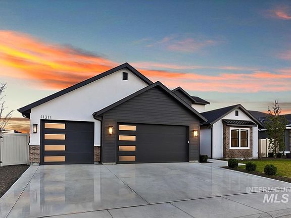 This beautiful, custom designed home with all of the design upgrades is a MUST see! This is a builder's private, custom-built home with many beautiful, upgraded design finishes to enjoy. The primary bedroom is on the main level with a beautiful soaker tub, walk in shower, and dual vanities. Two more bedrooms with a full bathroom plus office with glass, French doors on the main floor. Living room has a brick fireplace and a framed television included. Living room and kitchen have surround sound stereo system included to enjoy while cooking and/or watching tv. The second story has a third bedroom with walk in closet, full bathroom, and a vaulted bonus room with built ins, television, and surround sound included to enjoy those movie or game nights with the whole family. The outdoor living space is beautifully landscaped and includes a covered patio to enjoy those Idaho summer nights grilling and/or watching the sunset. Outdoor space has enough room for your dog to run around. Community pool. Don't miss this one!