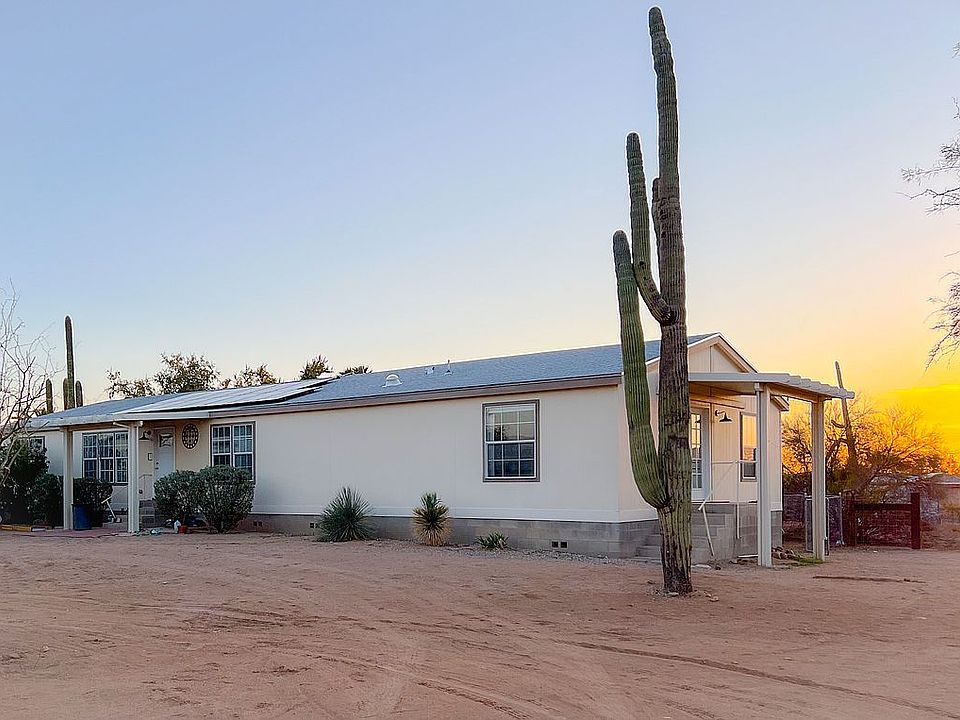 You will feel at home immediately in a warm, welcoming interior which is bathed in natural light and incorporates relaxed living spaces, dual-pane windows and vaulted ceilings. Fall in love with this spacious well-maintained kitchen, equipped with laminate countertops, large center island and a large walk-in pantry. Home comes with dual master suites. Drift off to sleep each night in the spacious master suite that benefits from an ensuite bathroom, walk-in closet and mountain views. Designed with relaxation in mind, one of the master bathrooms was recently updated and comes equipped with a walk-in shower and generous counter space. This house comes equipped with solar panels with a transferable loan (NOT A LEASE) and high-efficiency washers and dryers which makes it ready to move in. The beautifully maintained 1 acre property features a screened porch and mature trees. Roof was replaced in late 2020. A gorgeous sanctuary year-round. Spacious Fourth bedroom could double as a family room, media room or studio. Have you been searching for the perfect place to enjoy country living? Well placed in a relaxed Pima County neighborhood. Right down the street from many hiking trails and local shops. All the conveniences you could possibly need are a short distance away. Easy access to great public schools. Included is a large playground and trampoline. Bring your kids, dogs and horses too! This unique home won't last long. Schedule your private tour today.