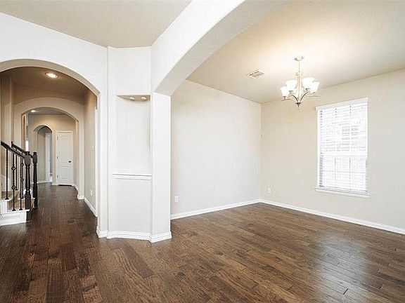 Discover this stunning 5-bedroom, 3.5-bathroom home located in the highly sought-after gated community of Enclave at Hidden Cove, just a short walk to beautiful Lake Lewisville. Designed with both comfort and style in mind, this residence features wood floors, elegant curved arches, and neutral paint tones that create a warm, inviting atmosphere. Entertain with ease in the formal dining room, or gather in the spacious family room that seamlessly flows into the open-concept island kitchen. The kitchen is a chef's delight, boasting granite countertops, stainless steel appliances, tile backsplash, and abundant cabinet space. The private first-floor owner's suite offers a luxurious retreat with dual vanities, a relaxing garden tub, and a separate shower. Upstairs, enjoy a huge game room, a fully wired media room with stadium seating, and oversized secondary bedrooms all with walk-in closets. Step outside to a pergola-covered patio, perfect for outdoor dining and entertaining. The Enclave at Hidden Cove offers resort-style amenities, including a gated entrance, sparkling pool, jogging and biking trails, greenbelts, park, playground, private lake, and fishing pond. With its prime location near Lake Lewisville, spacious layout, and exceptional community amenities, this home truly has it all.