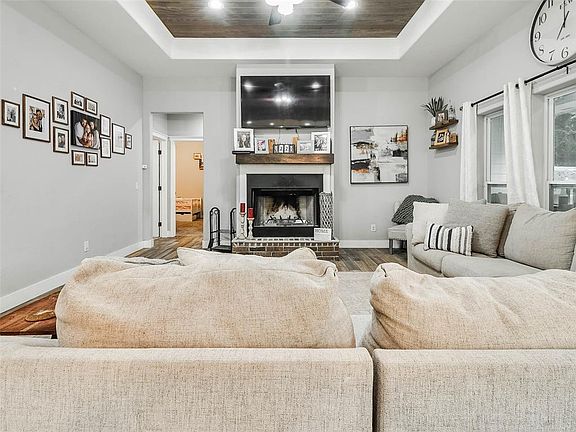 OPEN HOUSE 10-5-25! 2-4pm You must see this beautiful home! Built in 2021, completely move in ready and on almost 1 full acre, this 4-bedroom, 2 bath home offers modern design and thoughtful upgrades throughout. Located just a half mile from Perkins, in a quiet, family-friendly neighborhood. The open floor plan features abundant natural light, a cozy wood-burning fireplace, and ceramic tile flooring. The kitchen offers quartz countertops, soft-close cabinetry, a large walk-in pantry, 2-in-1 oven, pot filler, under-cabinet lighting, and an oversized island with USB outlets and storage. The primary suite includes a spacious walk-in closet with built-ins, dual sinks, and a waterfall showerhead. Both bathrooms feature dual sinks and pocket doors for privacy. Additional highlights include ceiling outlets for mounted TV's, large attic space, fenced backyard with gated access, and double front doors. This home has a perimeter lighting system with timers and 8 exterior security cameras (new modem required) for added convenience and peace of mind.