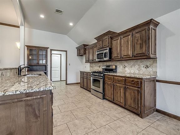 Move in ready! Brand new carpet and paint. Three car garage, 4 beds or 3 plus an office. Master suite has a walk-in closet with built-ins and a jet tub and shower. Large backyard with in-ground storm shelter. Third car garage has a pass through to the backyard great for mowing. Open floor plan and walking distance to neighborhood pool, community firepit and playground. Interior location in the desirable Canterbury neighborhood. All applicants must complete background check and pay their application fee. No pets. Owner is a licensed Realtor and Owner managed. 2024-10-01