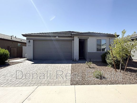 No Application Fees! Newer 4 bedroom, 2 bathroom East Mesa home with upgraded finishes throughout located in Destination at Gateway East. The home features a spacious open floor plan with 12 x 24 tile flooring in all living and high traffic areas, neutral paint, recessed LED lighting, ceiling fans in every room, and 2-inch wood blinds. The bright living room flows seamlessly into the modern kitchen, which includes quartz countertops, subway tile backsplash, shaker cabinets, large island with breakfast bar, walk-in pantry, gas range, and all stainless steel appliances. The split floor plan includes a large primary suite with walk-in closet, double linen closet for extra storage, dual sink vanity, and step-in shower. Secondary bedrooms are generously sized with good natural light. The laundry room includes upper cabinets for additional storage, and a washing machine and dryer may be provided upon request. The garage offers epoxy flooring and built-in storage cabinets. Low-maintenance yard and modern curb appeal complete this desirable East Mesa home.