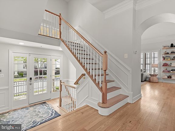 Indulge in the epitome of luxury living with this sophisticated and elegant home, boasting an array of stunning updates and a premier location that overlooks the vibrant community amenities nestled at the heart of Midtown in Maple Lawn. Set within a stately corner end-of-group residence, spanning over 5500 meticulously crafted square feet across four floors, this residence epitomizes grandeur and refinement at every turn. From the moment you step through the grand entrance, you are greeted by a timeless fusion of architectural elegance and modern luxury. Adorned with designer lighting, custom plantation shutters, and fresh interior paint, every detail has been meticulously curated to elevate the living experience to unparalleled heights. Arched windows and doorways bathe the interiors in natural light, while lofty sun-filled windows frame picturesque views of the surrounding community. The main level unfolds with an air of sophistication, featuring refinished hardwood flooring in a light hue, elegant wainscoting, and regal crown molding that leads you into the formal living room, a sanctuary adorned with a marble surround fireplace and floor-to-ceiling windows that invite the outdoors in. The dining room, adorned with elegant wainscoting sets the stage for memorable gatherings and dinner parties. Meanwhile, the adjacent gourmet kitchen is a culinary masterpiece, boasting light gray cabinetry, a contrasting island with a breakfast bar, and top-of-the-line Café Smart appliances, all artfully complemented by hand-tossed tile backsplash and quartz countertops. Ascend the grand staircase to the upper levels, where luxury awaits. The first upper level is a haven of rejuvenation, featuring a primary bedroom retreat with an impressive walk-in closet and spa-like en-suite bath, complete with a double vanity, freestanding soaking tub, and a timeless elongated subway tile shower enclosed by frameless glass. A second bedroom with an en-suite bath and an adjacent laundry room boasting cabinetry and a convenient sink concludes this level. Journey to the top floor, where a loft space greets you, adorned with built-in bookcases. Here, two additional bedrooms await, each with a walk-in closet and en-suite bath, with one boasting a soaring two-story ceiling and palladian window that frame breathtaking views of the surrounding community. Descend to the lower level, where luxury and entertainment converge in perfect harmony. Adorned with luxury vinyl plank flooring, this expansive space is an entertainer's dream, featuring a recreation room with a wet bar, beverage refrigerator, and surround sound speakers, providing the perfect backdrop for casual entertaining. The closet under the stairs is ingeniously designed to maximize space utilization, providing a custom storage solution that seamlessly integrates into the home's ambiance. The lower level includes two additional versatile spaces, one with an attached bath, catering to a multitude of lifestyle needs. Step outside to the slate stone patio, where a wrought iron fence offers a sense of privacy and tranquility, allowing you to savor moments of serenity. The home is also equipped with an attached, rear loading three-car garage. Experience the pinnacle of luxury living with this exquisite home, where every detail has been meticulously crafted to exceed even the most discerning expectations. Property Updates: 2 AC units, movement of AC units to front of house, kitchen appliances, interior paint, refinished hardwood floors, added new hardwood floors to all bedrooms, renovated room over garage bathroom & added new hardwood floors to stairs and LVP to room, renovated primary bath, installed 3 designer closets/pantry, renovated kitchen - painted cabinetry new hardware new quartz, floating shelves, custom tile backsplash, marble fireplace surrounds (2), renovated wet bar, LVP flooring in basement and new light fixtures, egress window for basement & kitchen/dining/basement/secondary bedroom lights