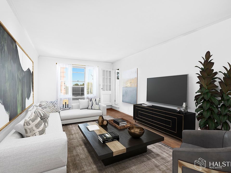Spacious and sunny apartment, with 3 exposures, ample closet space and views of Flushing Meadow Pond. Lovely pre-war touches......archways, sunken living room, solid wood floors with edge detail, eat-in kitchen and built in bookcases. The kitchen and bathrooms could use updating. The Nathan Hale is an immaculate, doorman (18 hours), co-op in Forest Hills with garage, gym. private outdoor sitting area and dog run. Pets are welcome (no weight restriction). Located on a quiet block, yet close to express subway, shopping and restaurants. The lobby & hallways are renovated. A winner-- won't last! First showing on Sunday, October 6th 2:00-3:30 pm.