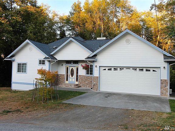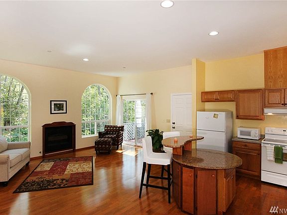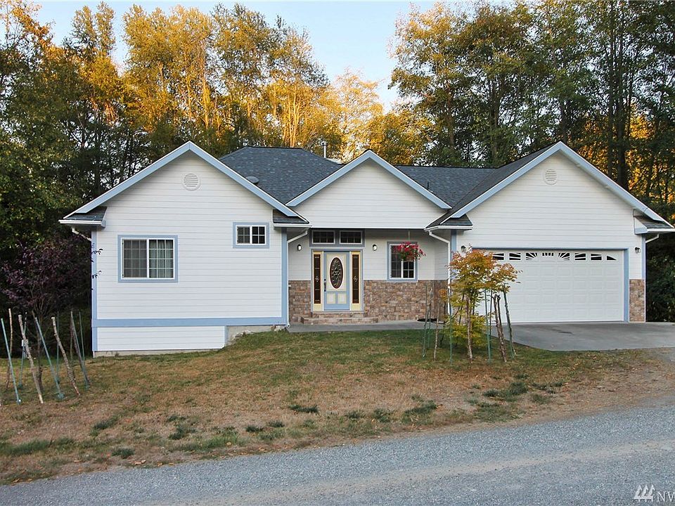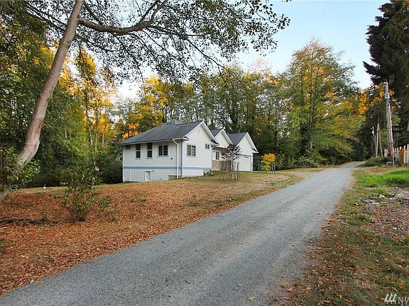 Newer contemporary rambler just seconds from the Seattle ferry. Shy acre of land provides garden spaces and a hidden outbuilding for all your garden tools. Soaring ceilings, 2 BR 2 BTH and AC with an efficient heat pump for your comfort. The open floor plan has a gas fireplace and a spacious living room open to the kitchen and private deck. Hidden trails take you back through the gardens to a lovely meadow. Perfect commuter's home on a very quiet, private lane. 2-car attached garage/shop.