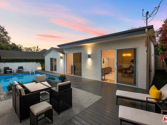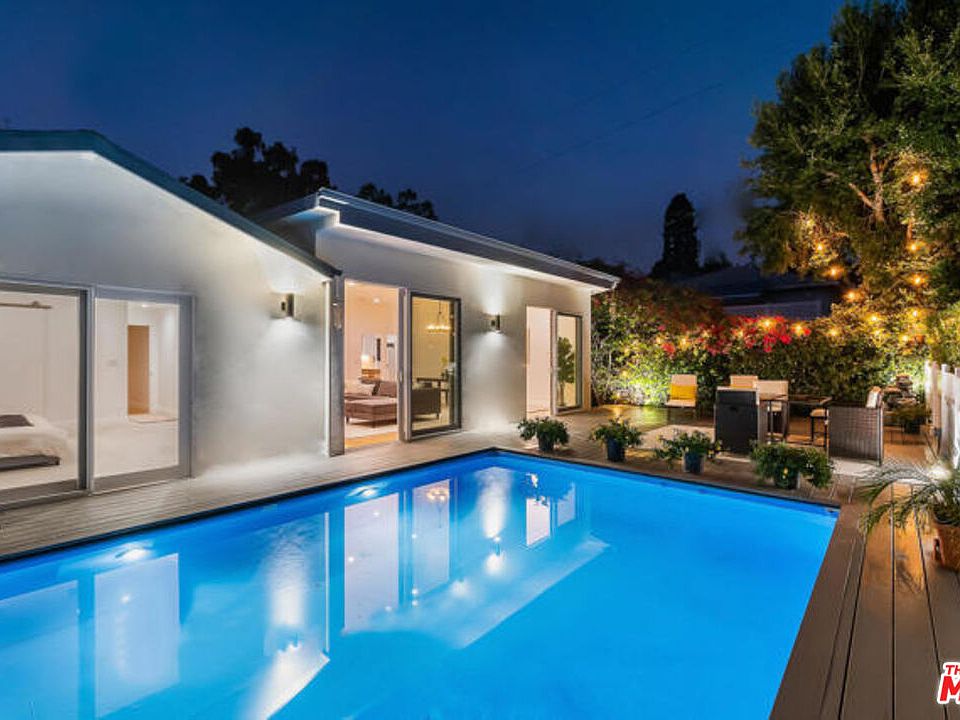 BEAUTIFUL Gated Brentwood Contemporary Home Entirely Remodeled In 2017. Elegant Villa with 4 Bedrooms and 3 Bathrooms and SWIMMING POOL, Striking a perfect balance between Warm Livability and Architectural Drama. Fourth Bedroom Staged as Office. House Entirely ON ONE FLOOR, Gated + 6 Security Cameras throughout the Perimeter. Bright Open Sunlit Interiors, 10 foot High Ceilings, Incredible Volume and Light with 4 Skylights and 3 Picture Windows, New Floors, New Double Pane Windows, Chandeliers, Sconces and New Recessed Lights throughout. Nest Thermostat, EV Charging Station, Ample Storage Area on site. SWIMMING POOL, Outdoor Deck surrounded by new lush landscaping and Complete Privacy for Family Gatherings or Intimate Dinners - Separate Entry to Backyard through a landscaped sideyard ideal for Children's Play area. Entire Deck Lit At Night with Silver Possini Sconces. Interior Design Features High End Finishes, Calacatta Marble Counter Top Kitchen, Gold Tinted MIRROR Subway Tiles, Double Ovens And Stove. Two Master Bedrooms one with Fireplace and the other with Ensuite Bath and Freestanding Jacuzzi Tub with picture window. Two FIREPLACES, brand new Shiny Hardwood Floors, All New Double Pane Windows throughout. Formal Dining Room Opens to a Large Picture Window bringing in Light and Greenery Of The Surrounding Garden. Family Room is an impressive 25 x 25 feet with Fireplace And 10 foot high Sliding Glass Doors That Open to the Deck and Swimming Pool. Flatscreen 100 inch 4K Ultra HD LED TV with 6 Speaker Theater Quality Surround Sound System in Living Room. Two 65 Inch 4K Ultra HD LED TV in Master Bedrooms. Entire House on One Single Floor Level. Two Master Bedrooms with Master Walk in Closets - One Pool Side Master. All Bathrooms Have Italian Marble Flooring And Marble Tiles. Master Bath with Freestanding Firenze Jacuzzi Soaker Bathtub. Large Storage Room near the two car garage. Situated on a tree lined picturesque Brentwood Street, 5Minute Drive to UCLA Campus, The Brentwood School, Kenter Elementary, Barrington Village Shops, Post Office, SUGARFISH, Whole Foods, Starbucks and Top Rated Brentwood Restaurants Including Toscana.