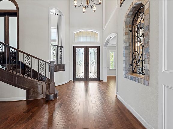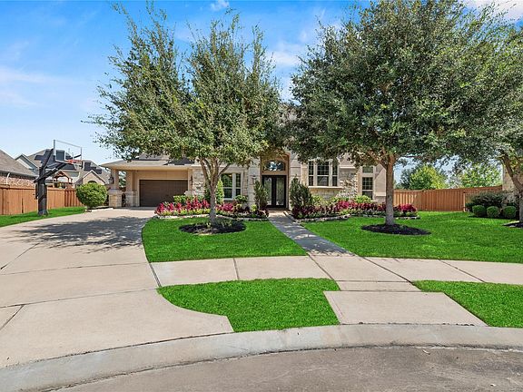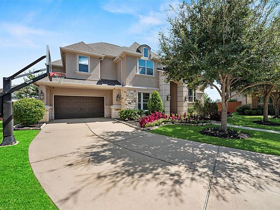 Experience resort-style living in the masterplanned community of Aliana. Nestled on a private cul-de-sac, this stunning home sits on an oversized 18,182 sq ft lot and offers luxury at every turn. Enter through double metal doors into a soaring foyer, with a custom office and step-up library nearby. The chef’s kitchen features a large island, pot filler, double ovens, butler’s pantry, and ceiling-height cabinetry with glass accents, flowing into a spacious family room with cast stone fireplace, wood beams, window seat and surround sound. A wine room with iron doors and beverage center adds elegance. The primary suite overlooks the pool and boasts a spa-like bath with dual shower heads, soaking tub, and a custom closet. Upstairs offers a game room with water-view balcony, wet bar, and media room. Outside, enjoy a covered patio, freestanding outdoor kitchen, heated pool with swim-up stools, spa, and lush a lawn. With two staircases and exquisite finishes throughout, this home lives grand.