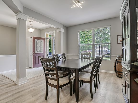 North Plainfield ranch in a premium location. The wide-open floor plan and great natural light, along with the volume ceilings and updated fixtures and finishes throughout add a touch of modern elegance. The gorgeous kitchen renovations in 2024, including refaced cabinets, new solid surface countertops, stainless appliances, sink, and garbage disposal, are a joy to cook and entertain in. The spacious family room and formal dining room with a tray ceiling provide ample space for gatherings. Primary bedroom featuring a ceiling fan, walk-in closet, and completely updated en-suite bathroom is a perfect retreat. Additional two generous bedrooms, another full bathroom, and laundry room complete the first floor. The massive, partially finished, full basement offers so much potential. Use the 2 additional, finished spaces as bedroom, office, craft room, workout area, etc. And add your finishing touches to the main basement space - for a great opportunity to customize to your needs. The beautifully landscaped yard backs to prairie and path - enjoy your patio with no backyard neighbors. Perfect for relaxation or entertaining. Additional storage available in your 8x12 shed. Built-in 11kw electric car charger and extended driveway are fantastic bonuses. Roof (2020). Fence (2022). Ejector (2023). A/C (2023). Water Heater (2018). Washer and Dryer (2022). LVP Flooring (2022). Enjoy Plainfield: Downtown with its quaint shops & restaurants, fests, parades. Or visit Settler's Park for movies/concerts, ponds, parks, paths. The Riverfront area has a kayak launch, tubing or space to have a picnic. The location is convenient to shopping, highways and public transportation - metra, Pace Park n Ride are both nearby. Plainfield North High School, Heritage Grove Middle School and Freedom Elementary.