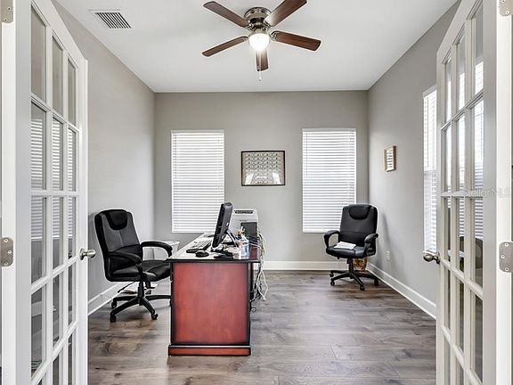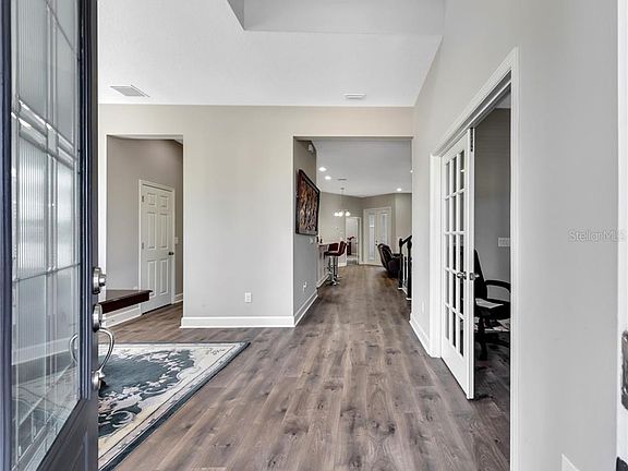 ALMOST NEW, WHY WAIT? This 2018, Spencer Model in the sought after Winthrop Village Community will impress even the pickiest buyer with its high end upgrades. Enter the beautiful beveled glass door to an impressive soaring two story entryway flooded with light from above. There is an ample sized formal dining room off the foyer and an office with French doors for privacy. The luxury engineered floating wood floors are designed to be "soft on you feet" and the neutral high grade paint palette throughout will appeal to everyone. As you continue through the home you are greeted to a large open floor plan family room, breakfast area and true gourmet kitchen. No upgrade forgotten for the cook in the family! Five burner gas cooktop with safety features and impressive stainless vent hood, built-in double ovens, built-in microwave/convection oven and oversized stainless. The 42" wood cabinets have highly desirable, maintenance free Quartz countertops that are absolutely stunning. Exceptional pantry space rounds out this dream kitchen! Your entertainment needs continue to be met with an oversized, screen-in lanai. The three car garage has back alley access. Efficient gas tankless water heater. The large Master bedroom is conveniently situated on the first floor with a very private retreat feel. The walk-in closet has extra shelving and the luxurious master bath is complete with garden tub, generous size seamless glass shower with seating area and double sinks. Beautiful wood stairs lead to three bedrooms (one with private attached bath), laundry room, and spacious bonus room with French doors. Winthrop Village is walking distance to shops, restaurants and grocery store. There is a community dog park, playground, clubhouse with gym and pool area. Low HOA and NO CDD. Quick access to downtown Tampa, MacDill AFB, Brandon mall, Tampa Airport, sporting events, Disney and beaches.
