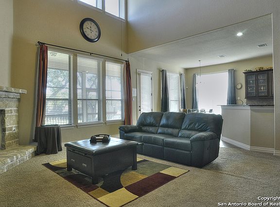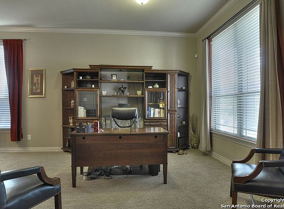 Elegant Over 4000sq.ft. in Helotes For Under $94/sq.ft.! 5 Bedrooms All w/Walkin Closets Plus a Study! Ample Gameroom Plus Theater with Elevated Seating! Master Suite Downstairs with Box Ceilings, Sitting Area & Spa-Like Bath! Smart Home -Operate Thermostat, Security, Cameras & Some Lights on Your Phone! Chef-Ready Kitchen w/Gas Cooking, Tons of Granite Counters! Soaring Beamed Ceilings in Family Room w/Stone Fireplace with Hearth & Mantle! Screened In Patio Overlooking Spacious Yard with Storage Shed! Wow House!