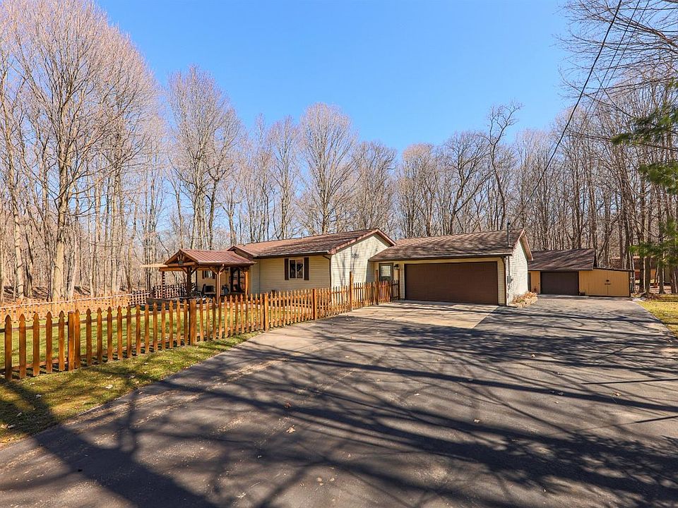 OFFER DEADLINE: 3/22/21 at 4 pm. Affordable, impeccably maintained, move-in ready ranch with second garage/man-cave nestled in beautiful setting of mature trees! You'll love the open floor plan with hardwood flooring, the updated, spacious kitchen with newer stainless steel appliances and subway tile backsplash; and the freshly updated baths. The outdoor living space boasts two porches - one screened - and a fabulous fire pit area with plenty of parking for your friends and family. Sellers have invested more than $53,00 in recent improvements, including the paved circle drive, new door wall and fabulous front porch, back screened porch, fenced in yard (great for kids and/or pets!) new furnace with smart thermostat, updated light fixtures, too many to list. There's no HOA, so you can park your boat, trailer - whatever you like - on the property; the public access to Portage Lake is just down the road. You'll have no need for a basement thanks to the second garage, though there's also a huge clean and dry crawl space for storage. Whole house generator, first floor laundry. It's like living up north, but just 25 minutes to Ann Arbor, 15 minutes to Brighton. Check it out today!