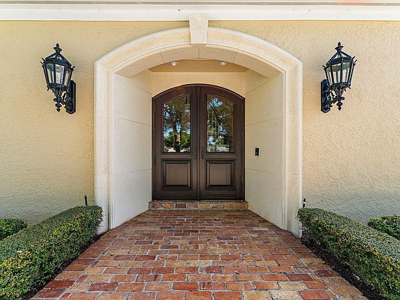 Unprecedented, once in a generation, opportunity awaits in this stately French Country estate home, perfectly positioned on one of the largest Jack Nicklaus Signature golf course and lakefront lots in the entire Village of North Palm Beach, a short walk or golf cart ride to the clubhouse! Situated on over half an acre and tucked away towards a quiet cul-de-sac, unparalleled grounds and endless views across four fairways to intracoastal boating activity await from every angle. Architecturally stunning and thoughtfully laid out over approximately 5,197 square feet of living space. Beyond the natural stone foyer with power room, hidden storage, and sweeping spiral staircase, voluminous ceilings await as you entertain in the formal living room or formal dining room area finished in beautiful hardwood floors, overlooking the expansive green space, pool, lakes, and golf course beyond. In the heart of the lower level the kitchen boasts warm wood cabinetry with pantry, pass-through to the Florida room with incredible natural light and terra cotta floors, and opens to the adjacent den with eat-in dining area featuring uniquely orchestrated garden, pool, lake, and golf course views. Retreat to the first-floor Primary suite, with en-suite bath and walk-in closet, leading to the Florida room with tranquil sunrise to sunset views. Guest accommodations, across the split-floor plan of the main level, feature an additional bedroom with golf course view and adjacent full cabana bath leading to the pool. Upstairs an office/study and bonus room open to an upper deck area with panoramic views, and two additional bedrooms, with en-suite baths. Endless outdoor entertainment awaits on the spacious private patio, all backlit with lush, tropical landscaping and overlooking the pool, lakes, and golf course. Secluded cul-de-sac entrance leads to an expansive circular driveway, with abundant guest parking and full two-car garage. Upgrades abound : all impact windows and doors, newer air conditioning systems, landscape lighting, and more.