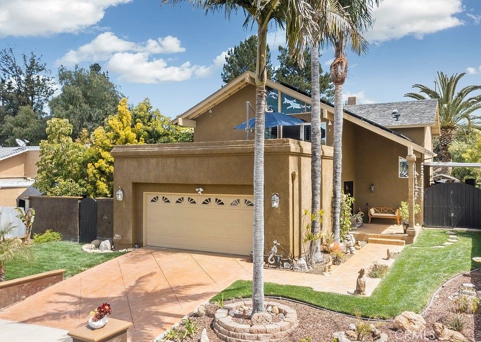 Aloha and welcome home to your Tropical Paradise in Southern California. For over 26 years, the owners have created a lovely home, a retreat and something for everyone by adding a salt water pool with a custom water slide, spa, lush landscaping, palm trees, view deck off the main bedroom, solar and more. Step through the front door into the formal living room, followed by the dining area, updated kitchen, the family room looking out to the back yard, followed by a bedroom and bathroom that completes the main floor. Make your way upstairs to 4 additional bedrooms, an updated full bathroom, and the second floor is completed by a spacious bedroom retreat with vaulted ceilings, custom stain glass, abundant closet space, updated bathroom and a large view deck. You will appreciate the natural flow of the home, the planning put into the improvements, the backyard paradise and the meticulous care of this fabulous Home!!!(Agents See Private Remarks). Solar lease is leased.