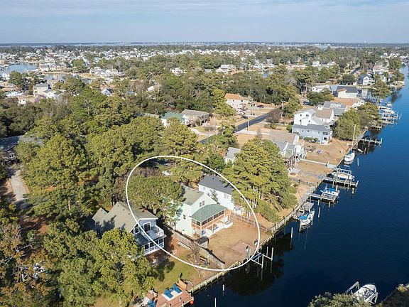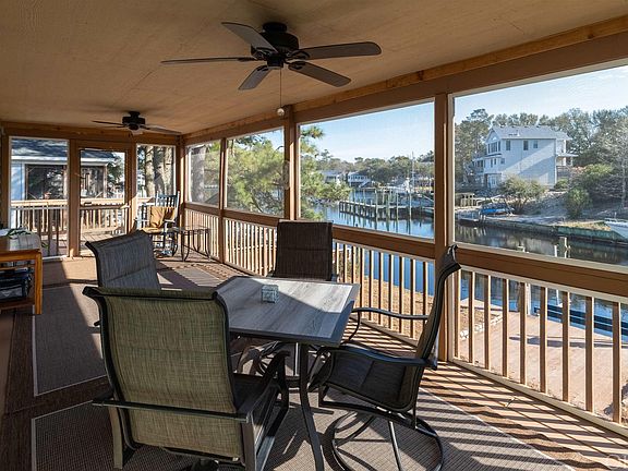 Stunning sunsets await at this well maintained Canal front property! With a private boat lift (up to 7000 lbs) and dock, you can enjoy a quiet waterfront lifestyle on the Outer Banks tucked away in Colington Harbour, just minutes to the Wright Brothers Memorial and the Ocean. The oversized screened porch off the living area is a showstopper, overlooking the canal and offering indoor / outdoor living with incredible water views. The original owners have lovingly maintained this property with fresh paint inside and out in the last 2 years, and have added some great features including a storage/workshop area, detached shed, fence around the backyard, outside shower, fish cleaning table, wiring for a hot tub, and gutters. Inside you will love the single story living option with a bedroom, full bath, open layout kitchen, living and dining area all on the main level, along with bamboo flooring and a gas fireplace! The kitchen offers stainless steel appliances and room to add a free standing island, if desired. A cathedral ceiling and recessed lighting keeps the living space light and bright with vinyl tilt out windows to let in tons of natural sunlight. Upstairs you will find two additional bedrooms that share a 2nd full hallway bathroom. This property was built for indoor and outdoor living, and the sunsets are spectacular! The private, fenced-in backyard oasis gives you room to garden, dine overlooking the water, relax on the covered patio, or entertain on the porch. Colington Harbour also offers incredible community amenities including a boat launch area, tennis courts, clubhouse, community pool, sound front park and playground, and a security gate ... the HOA dues are only $330 per Year! A must see if you are looking for Waterfront Living on the Outer Banks!