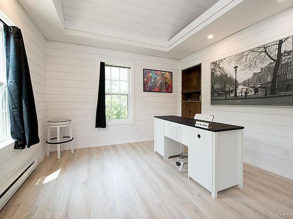 Originally a residential 3-bedroom home, the building has been thoughtfully renovated and is now ideally suited for office use. The interior features stylish shiplap walls, a soaring cathedral ceiling, a spacious full bathroom, and three flexible rooms that are perfect for private offices, a conference space, or client meeting areas. A full basement with a garage provides excellent storage or expansion possibilities. Use the upstairs and rent the lower portion- Full Walkout Basement and Garage or use if for your own business.