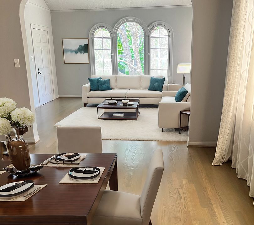 Step into a bright and airy living space, bathed in natural light streaming through the large, arched windows. The unique architectural details, including arched doorways and elegant hanging chandeliers, create a warm and inviting ambiance.
