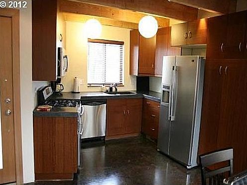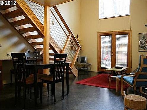 BEAUTIFUL MODERN TOWNHOUSE, 1132 SE Lincoln. Prime location in Hawthorne neighborhood near Ladd's Addition. Walk Score: 92. 1 bedroom, 1 bath, 786 square feet. Main floor: Kitchen- concrete counter tops, gas range, gas heat, A/C, exposed wood beams. 18' high livingroom ceilings, French doors to small private yard and covered patio. Concrete flooring throughout. Upstairs: Bedroom- built-in closet, wood flooring. Bathroom-tub and shower, washer/dryer. owner pays garbage, renter pays gas, water and electricity