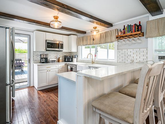 Welcome to this delightful Cape-style home, offering a cozy and inviting atmosphere with a two story layout. This property features a total of 5 rooms, including 2 comfortable bedrooms and 2 full updated bathrooms. The updated kitchen includes quartz countertops, light grey cabinetry, a cozy dining nook, and a built in drink station. Situated on a generous 0.31 acre lot, this home provides ample outdoor space for gardening, entertaining, or simply enjoying the fresh air. Spacious basement. Step outside to a beautiful Trex deck, complete with a fire pit, string lights, outdoor TV and sun shades for the summer. Perfect for entertaining, gatherings, barbecues, or simply relaxing. Historically, this home has been a successful Airbnb, making it an excellent investment opportunity. Only 2 miles to Craigville Beach and only 1 mile from Wequaquet Lake. This home is a wonderful opportunity for those seeking a comfortable and manageable living space in a charming Cape-style design.