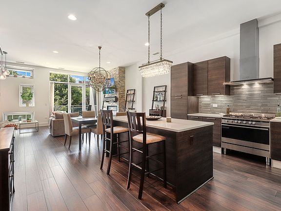 Stunning West Loop condo with direct elevator access and 840 square foot private terrace. Developed by Belgravia this condo lives like a single-family home. The bright and spacious living room features a floor to ceiling stone veneer ventless fireplace with a reclaimed Chicago railroad tie mantle and flows in to the dining area and chef's kitchen. Contemporary Italian cabinetry with under cabinet lighting, Carrina quartz countertops, Fisher & Paykel refrigerator, range and range hood along with an island that has a Dacor microwave drawer, beverage fridge and breakfast bar make the kitchen a dream for any cook. Private balcony off the living room is perfect for enjoying your morning coffee. The primary suite has a large walk in closet, room for a sitting area and a private en suite that features a steam shower with a bench and double vanity. Two secondary bedrooms, including one that is en suite, both have large closets with plenty of storage. All three bathrooms feature nightlights in the ceilings. A hallway nook is the perfect home office or den. Large laundry closet with stacked washer & dryer, cabinets for extra storage and a rod for hanging. The private terrace is the perfect place to spend the summer with a custom Ipe wood arborvitae planter box, an automated irrigation system, smart schedule LED landscape lighting, wood grain tile patio and turf. New dishwasher & hardwood floors in 2022! Large storage space & heated garage parking space included in the price. Unbeatable West Loop location close to Restaurant Row, Mary Bartlme Park, Skinner Elementary and the highway.