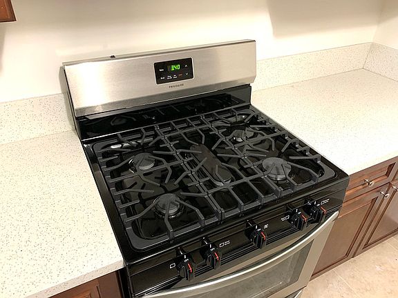 This cozy, recently remodeled, upstairs front corner unit features 3 bedrooms and 2 full bathrooms. The kitchen is equipped with cherry wood cabinets, quartz countertops, stainless steel stove, and a dishwasher.