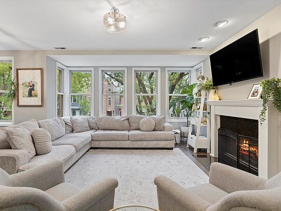 Welcome to this spacious 2 bed / 2 bath home on an extra-wide lot in the heart of Lakeview! Located on a quiet, tree-lined street, this bright residence features an expansive living and kitchen area with walls of windows and abundant southern light. The oversized kitchen includes a large island, stainless steel appliances, granite countertops, custom cabinetry, and a stylish backsplash. A separate dining space, wood-burning fireplace, and open layout make it perfect for entertaining. Both bedrooms are generously sized, with a large private deck off the primary suite. You'll also enjoy a true mudroom with a walk-in laundry area, ample closet space throughout, and additional storage. Garage parking is included in the price. All this just steps from the L, shops, and restaurants that make Lakeview one of Chicago's most desirable neighborhoods!