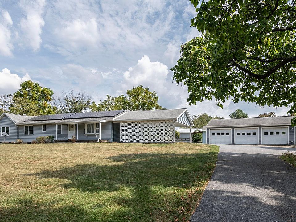 It's All Here!! No HOA!! This Expansive 5 Bedroom 3 Full Bath Rancher with Full Finished Basement Nestled on 1 Acre - Offers Plenty of Room for Everyone!! So Many Possibilities!! Fresh Paint! Carpets Professionally Cleaned! Full Kitchen and Dining Area - Stainless Appliances - Huge Bonus Room with Full Bath and Additional Room - Primary Bedroom has Own Full Bath and Walk In Closet - Addition (2015) 4th and 5th Bedrooms have own Mini Splits for Heat and Air - HVAC (2 yrs) - Baseboard Back up -Attic Insulation Blown in (2015) - Roof (2014)- Main Level Laundry Room - Enjoy Low Monthly Electric Bills! (Solar Panels Owned)- 3 Car Detached Garage with (220 Amp) - 2 Car Attached Carport - Easy Entry Lawn/Workshop/Storage Shed with Garage Door- Septic pumped and Checked June 2025 -- And So Much More!! ** THIS IS A MUST SEE!!!