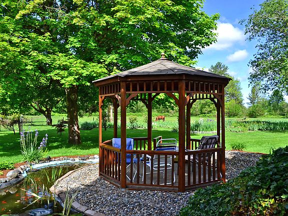 Pristine Nisqually property has it all! Private 5+ acre setting borders Hartman creek w/ fenced 3+ pasture on dead end drive. 30x60 barn w/ 4 stalls, tack room & shop. Storage shed, RV hookup, gazebo, goldfish pond & treehouse. Shaded yard w/ old growth trees. Cherries, blueberries, grapes & blackberries abound! Meticulously maint'd manufactured home. Featured in The News Tribune - Region’s largest Iris garden w/ 500+ varieties presents biz opportunity. Long-Term Nisqually Agriculture District.